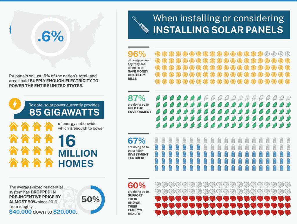 When you install solar panels, you can power your home (or at least part of it, depending on how many panels you install) with energy from the sun rather than pulling from your local power grid. Export compensation rules for excess generation vary by state and utility, so check your local policies via DSIRE. In some cases, if you generate an excess of energy and connect your panels to said grid, you can even sell your extra energy back to the power company.