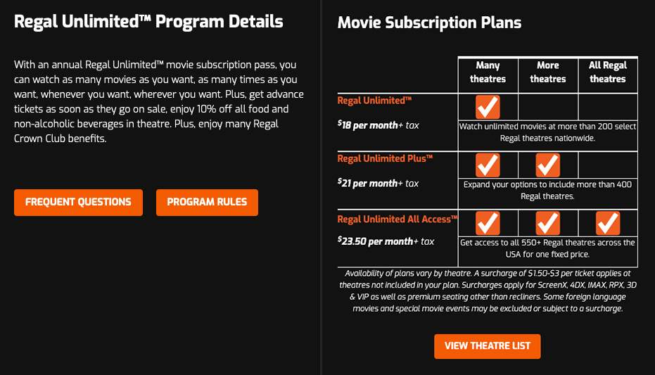 We’ll update this page if Regal provides additional clarification. Until then, rely on Regal’s official Unlimited page and Terms for authoritative, most‑current details, as pricing, participating theatres, surcharge amounts, and cancellation policies can change over time: Regal Unlimited and program Terms.