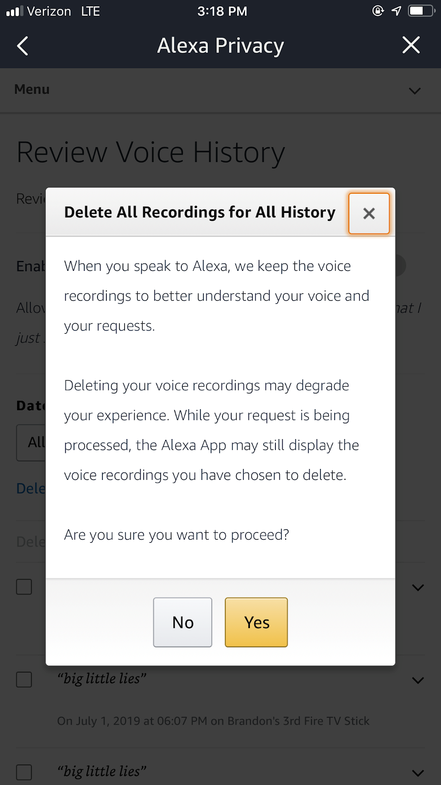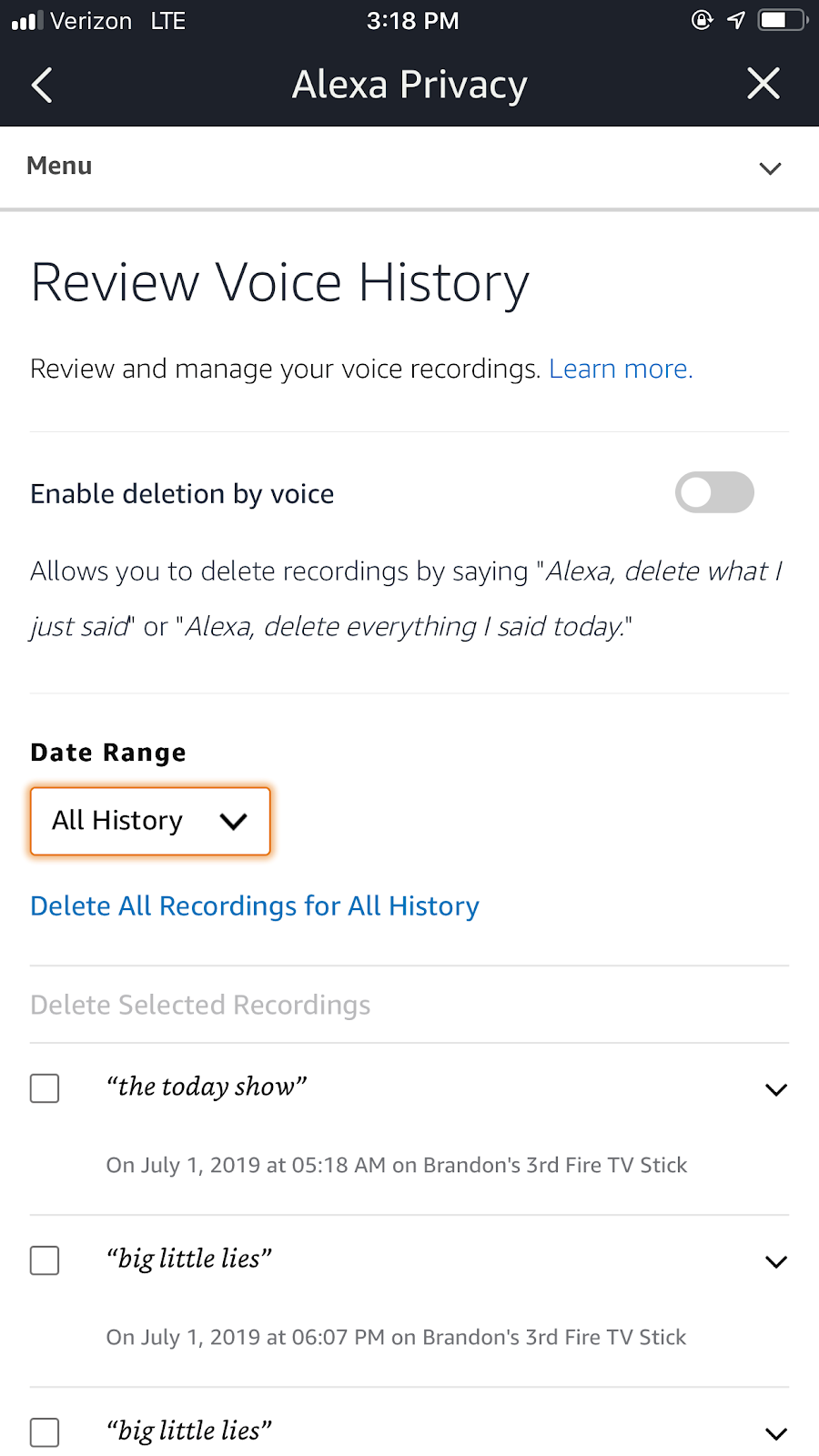 Delete your voice recordings